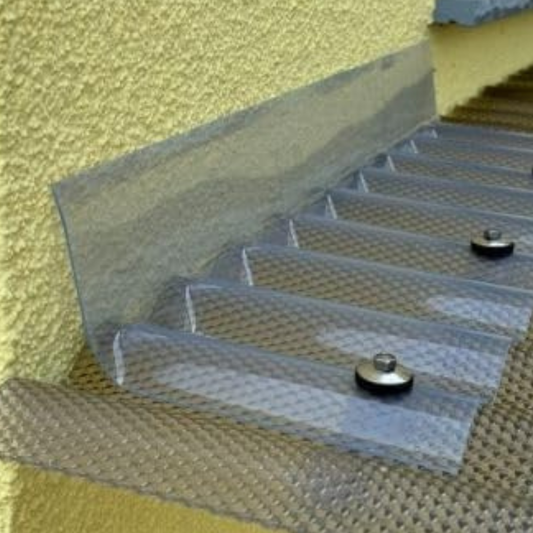 Raccord mural transparent en polycarbonate pour plaques ondulées 76/18